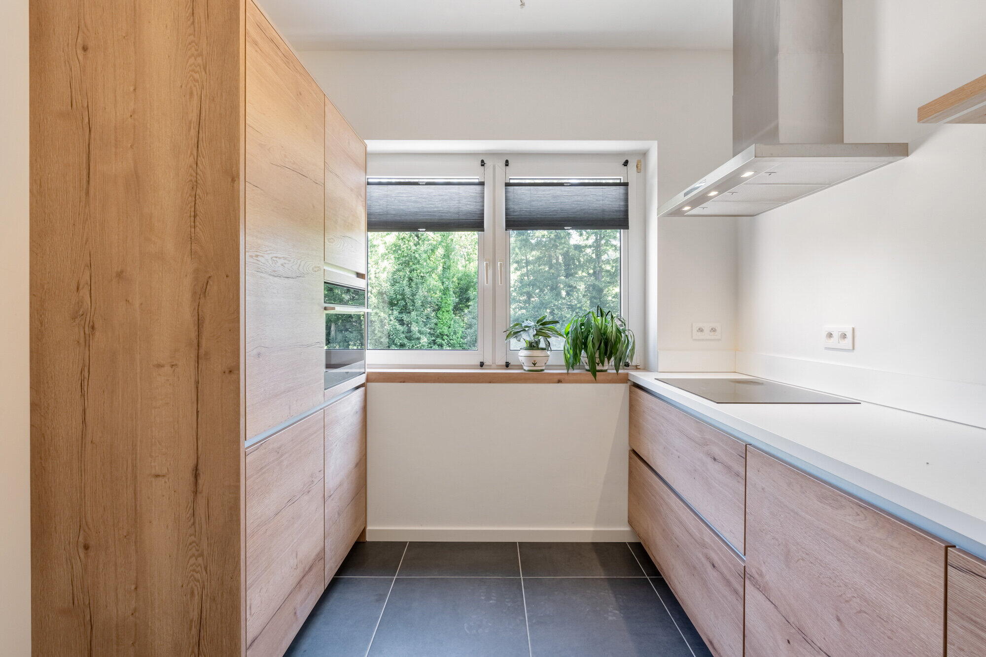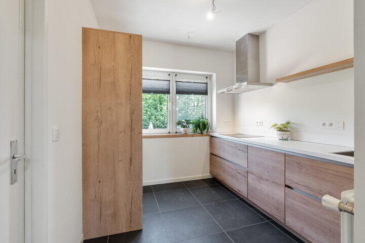 - Keuken voorzien RVS spoelbak, 4-pit inductievuur, vaatwasser, combi magnetron en frigo, allen van Whirlpool;