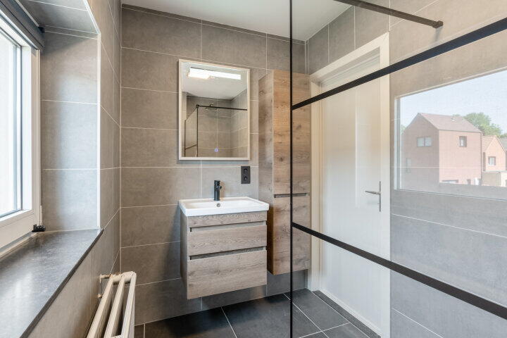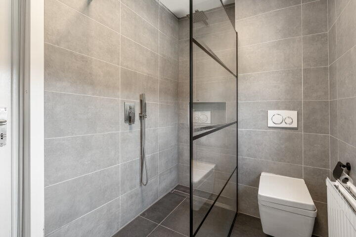 - Betegelde vloer en wanden, raam voorzien van vliegenhor.