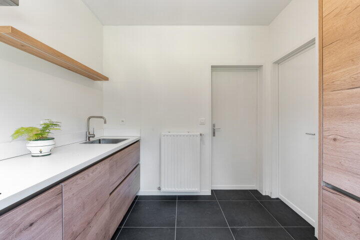 - Ruime kelder met inpandige garage voorzien van uitgietbak;